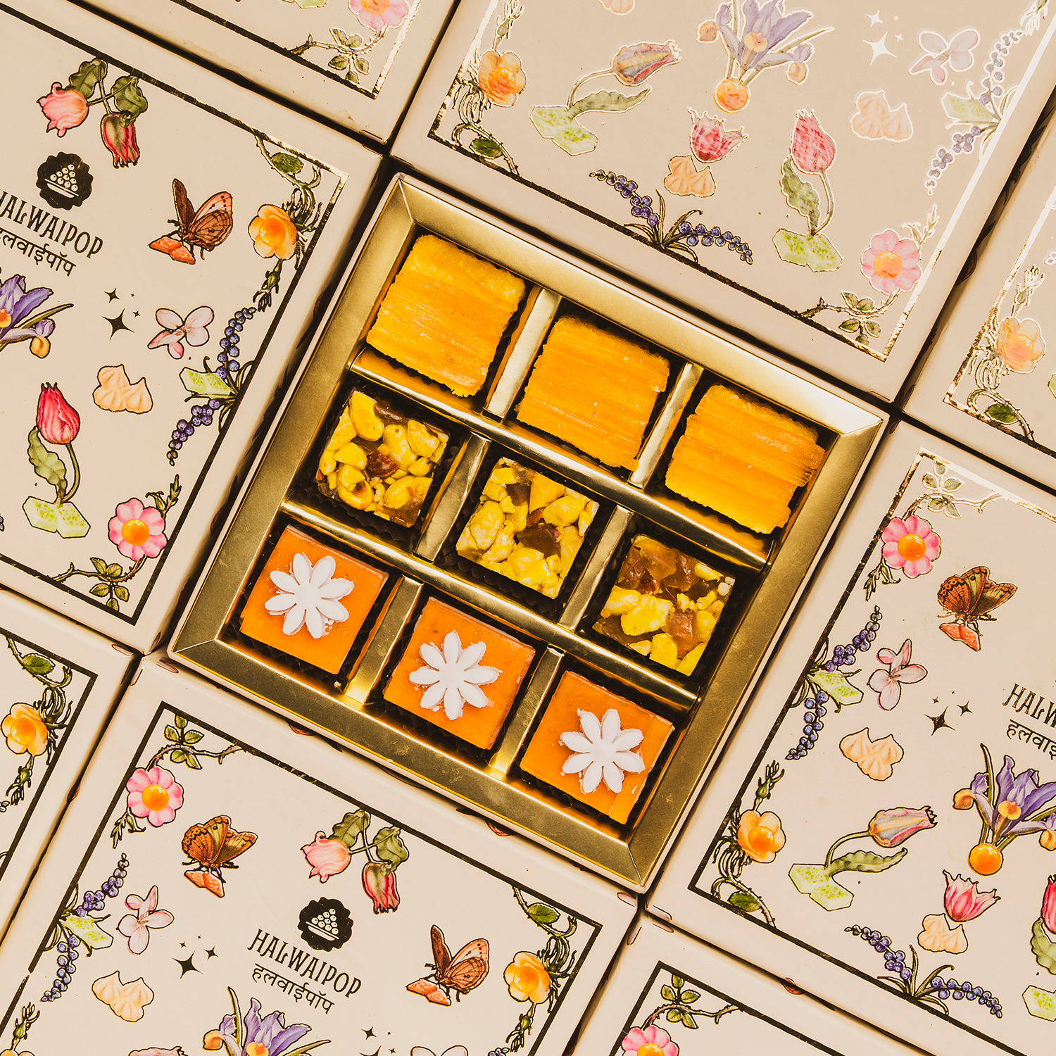 Pack composition: 3 pieces of each flavour (total 9). Elegantly packed and ready to gift.