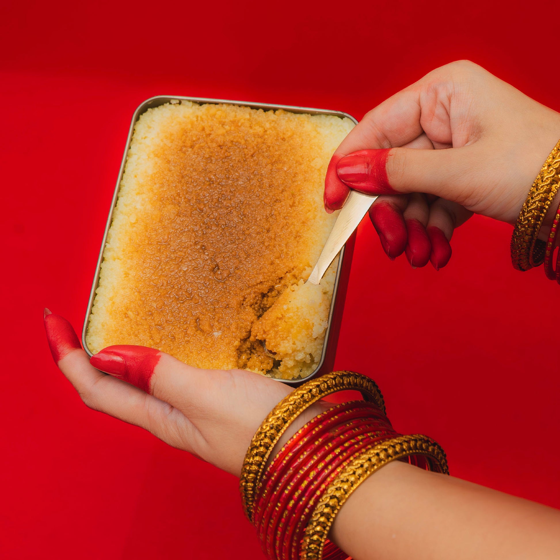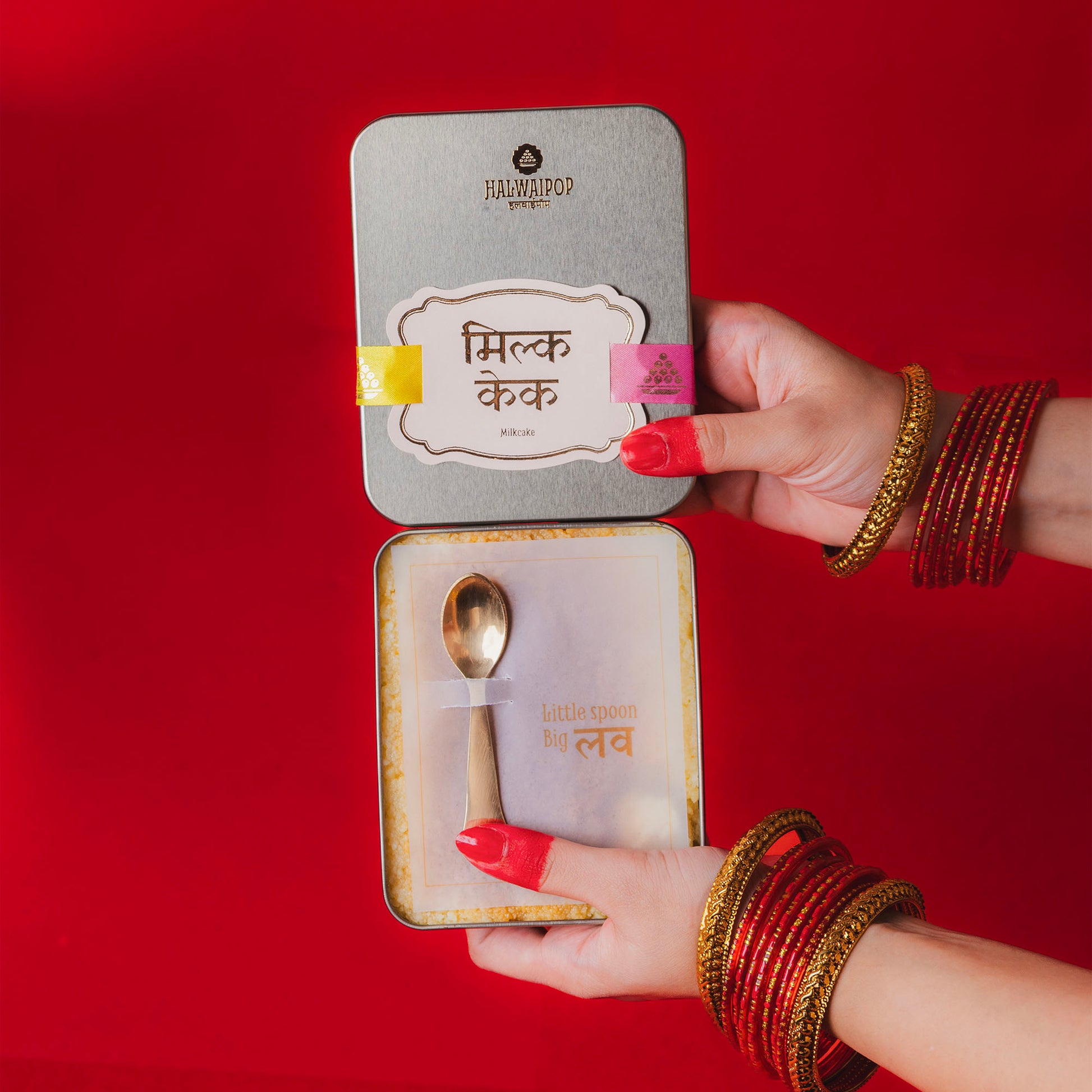 Classic two-tone milk cake with a gently caramelised centre and that signature grainy, melt-in-the-mouth bite. Packed in a reusable tin—gift-ready and travel-friendly.