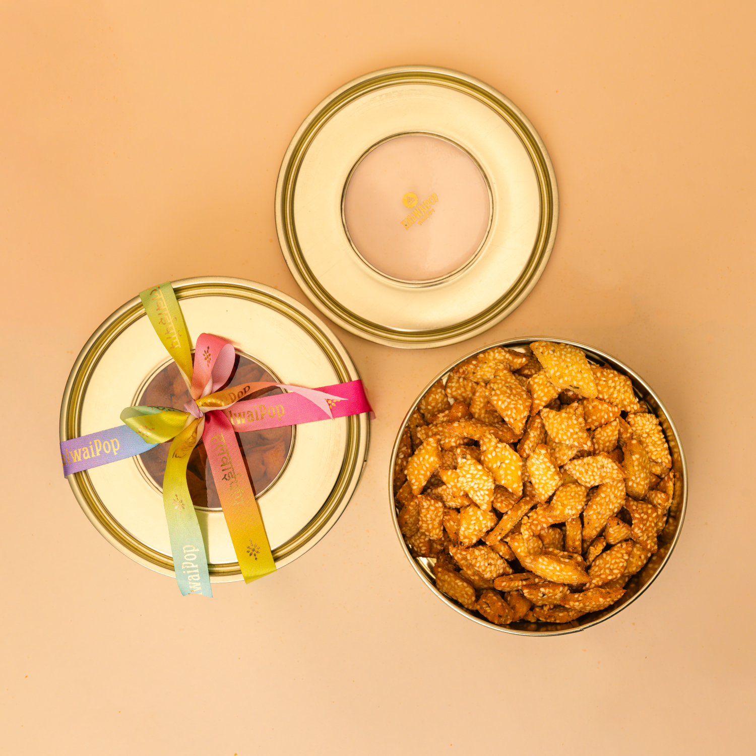 Indulge in the refined pleasure of our Sesame Para Box, an exquisite culinary treasure that elevates the traditional Indian snacking experience. Meticulously crafted with premium sesame seeds and delicately spiced, these crisp, diamond-shaped delicacies offer a perfect balance of savory notes and subtle sweetness. An elegant addition to your entertaining repertoire or a distinguished personal indulgence for moments of sophisticated leisure.
